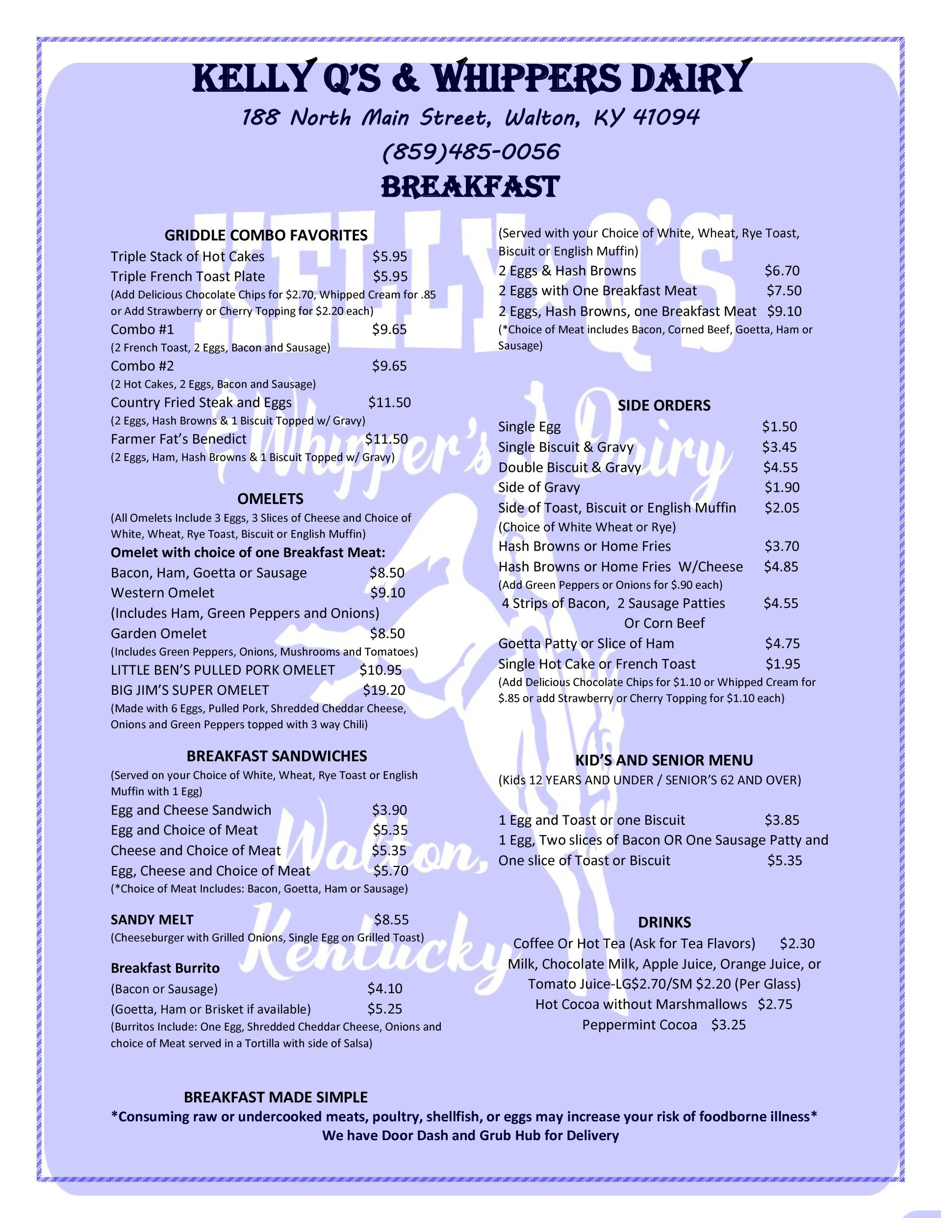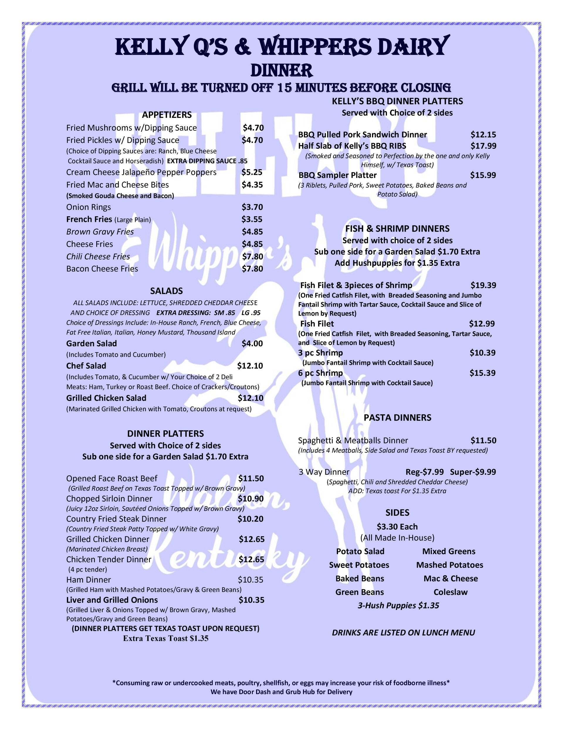 Try our new LOW-COST delivery service! IN-RESTAURANT MENU-PRICED...no upcharges. Just $6.99 most deliveries.